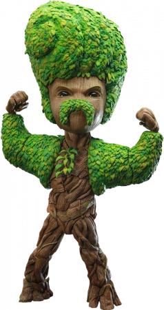 Die 26 cm große Groot-Figur wurde auf der Grundlage von Groots Aussehen in der Serie gefertigt und verfügt über drei austauschbare Gesichtsskulpturen mit lachenden, lächelnden und wütenden Gesichtsausdrücken; der spezialisierte Körper ist mit einer Baumtextur versehen. Büschel von Grünzeug geben Groot wechselnde Looks, von blättrigen Frisuren über den Körper bis hin zum beeindruckenden buschigen Schnurrbart und Bizeps. Zu den unverzichtbaren Accessoires gehören außerdem Gurkenscheiben zur Entspannung und Groots Zeichnung der Guardians of the Galaxy-Familie.