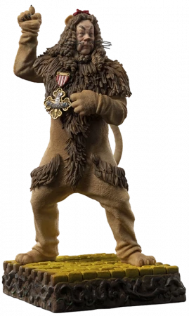 Iron Studios bringt auch die Deluxe-Versionen mit den Statuen ‘Cowardly Lion Deluxe – The Wizard of Oz – Art Scale 1/10’, mit dem anthropomorphen Löwen von Oz, der sogar Angst vor sich selbst hat, gespielt von Bert Lahr, mit seiner Tapferkeitsmedaille auf der Brust, über einem Sockel der schönen Landschaft seiner verzauberten Welt, neben einem Baum aus seinem Wald, mit Türmen der Smaragdstadt im Hintergrund und der gelben Ziegelstraße zu seinen Füßen. Er schließt sich dann dem Mädchen Dorothy und ihren Freunden auf der Suche nach dem geheimnisvollen Zauberer an, damit der Löwe den Zauberer bitten kann, ihn mutig zu machen.