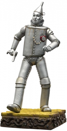 Im verwunschenen Land Oz entdeckt ein mutiges Mädchen am Rande der gelben Ziegelsteinstraße eine geheimnisvolle Metallfigur. Versteckt von Bäumen und Büschen wimmert ein Mann, der ganz aus Blech und völlig verrostet ist, verzweifelt nach seiner Ölkanne. Nachdem sie ihn aus seinem Rostgefängnis befreit und ihm geholfen hat, sich wieder zu bewegen und zu sprechen, erzählt er ihr seine traurige Geschichte, dass er sich innerlich leer fühlt, weil der Blechschmied, der seinen Körper gefertigt hat, vergessen hat, ein Herz hinzuzufügen. Daraufhin begibt er sich mit der jungen Dorothy auf die Suche nach dem rätselhaften Zauberer, der ihr helfen kann, in ihre Heimat Kansas zurückzukehren und ihrem neuen Freund vielleicht ein Herz zu schenken. Iron Studios bringt die Statue des klassischen ‘Tin Man – The Wizard of Oz – Art Scale 1:10’, gespielt von Jack Haley, mit seiner tickenden Uhr auf der linken Seite seiner Brust, der seine Axt schwingt und über ein Podest der gelben Ziegelsteinstraße läuft.