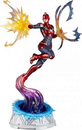 Die Captain Marvel 1:6 Scale Statue misst 19,5″ in der Höhe und 15″ in der Breite, inspiriert von ihrem Superheldenauftritt im Open-World-Action-RPG MARVEL Future Revolution. Carol Danvers stößt sich selbst höher, weiter und schneller, während sie über eine interdimensionale Portalbasis fliegt und ihre Fäuste auflädt, um einen mächtigen Photonenstoß zu entfesseln. Die farbenfrohe kosmische Energie, die von Captain Marvel ausgeht, ist lichtdurchlässig, um der Darstellung eine zusätzliche visuelle Dimension zu verleihen.
