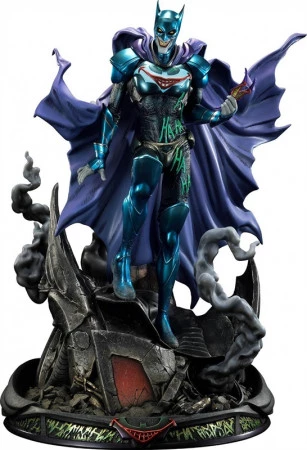 Mit dieser 31 Zoll großen Statue haben die talentierten Künstler von Prime 1 Studio ein weiteres comicgetreues Meisterwerk geschaffen! Der Joker zeigt sich in seinem farbenfrohen Future Batsuit mit leuchtenden Blautönen, einem auffälligen lilafarbenen Umhang und, wie seine böswillige Veränderung des Batsuits zeigt, einem leuchtend roten Lächeln über dem Bat-Symbol und seinem Markenzeichen, den HA-HA-HA’s, die überall zu sehen sind.