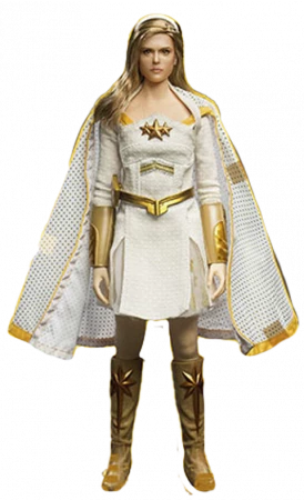 Diese Starlight-Figur im sechsten Maßstab verfügt über einen nahtlosen Körper und über 30 Gelenkpunkte. Die Kopfskulptur zeigt ein offiziell anerkanntes authentisches Abbild von Erin Moriarty als Starlight mit leuchtenden Augen und verwurzeltem Haar. Sie trägt ein detailliertes Kostüm mit einem Umhang und einem genau gestalteten Emblem, Armschienen, Gürtel und Stiefeln.