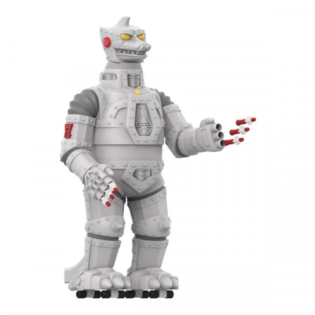 Mit einer Größe von 20″ sind die Super Shoguns von Super7 die nächste Evolutionsstufe der in den 1970er und 80er Jahren beliebten Jumbo-Spielzeuge. Dieser Toho Super Shogun Mechagodzilla ist bereit für den Kampf mit deinem alten Godzilla und verfügt über drei raketenfeuernde Finger an jeder Hand (insgesamt sechs!) mit den kultigen roten Originalraketen, bewegliche Arme, Beine, Hände und Kopf sowie Räder an den Füßen für den perfekten Vintage-Touch. Welches Monster des Chaos wird die Schlacht gewinnen? Das kannst nur du (und Mechagodzilla) entscheiden!